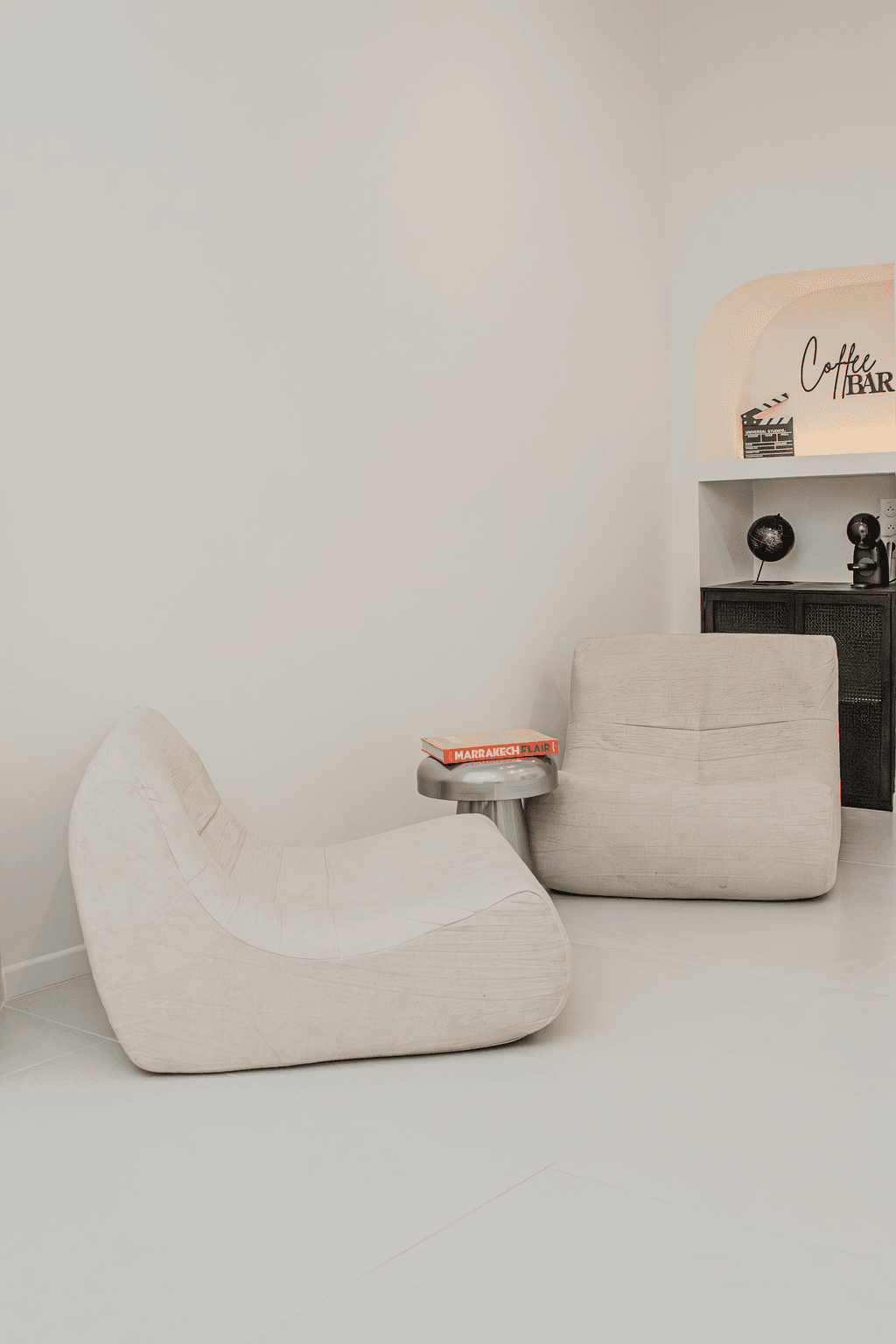 Station coffee, mini-frigo, espace stockage, essayage
